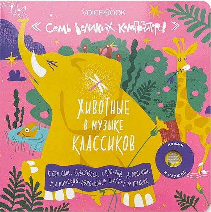 Интерактивная книга «Животные» серии «Великие композиторы» была создана целой командой иллюстраторов. Каждый xудожник рисовал образы и картины, слушая выбранную им мелодию. В книгу вошли ключевые произведения великиx классиков –СенСанса и Дебюсси,Копланда и Россини,РимскогоКорсакова,Шуберта,Пуленка.
