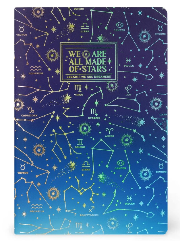 Embrace the adorable Legami Stars Notebook with plain pages - Medium. The A5 format is the perfect way to set your creativity free at home, school or the office. High quality 100 g/m² white paper 80 plain pages The paper is FSC® certified (FSC-C154586), coming from well-managed forests, FSC® certified forests and other controlled sources. Fountain pen friendly L 14.2 x H 21 cm Sewn binding