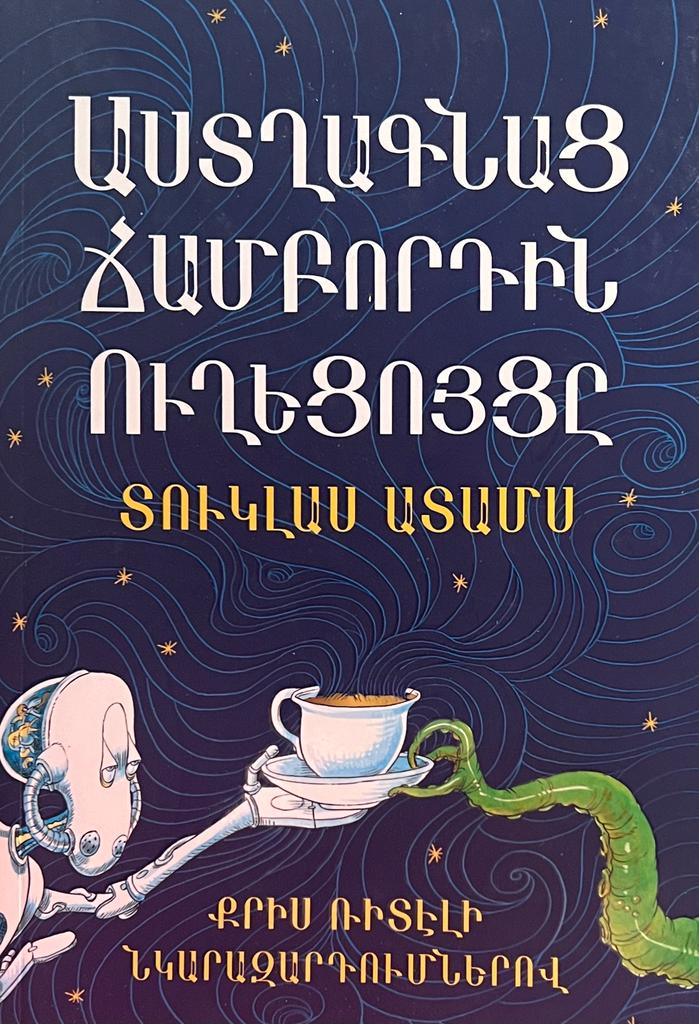 Արթուր Տէնթի համար սովորական Հինգշաբթի առաւօտ մըն է, մինչեւ այն ատեն՝ երբ տունը կը սկսի քանդուիլ: Շատ չանցած՝ Երկրագունդն ալ կ’ենթարկուի նոյն ճակատագրին, գերանջրպետային ճեպընթաց նոր երթուղիի մը տեղ բանալու համար, իսկ Արթիւրի լաւագոյն բարեկամը կը յայտարարէ որ ինք արտմոլորակային մըն է: Սա պահուս անոնք սանձարձակ կը սուրան անջրպետին մէկ կողմէն միւսը, հետերնին առած միայն անձեռոց մը ու գիրք մը, որուն վրայ ծաւալուն ու համակրելի գիրերով դրոշմուած է՝ ԱՌԱՆՑ ԽՈՒՃԱՊԻ: