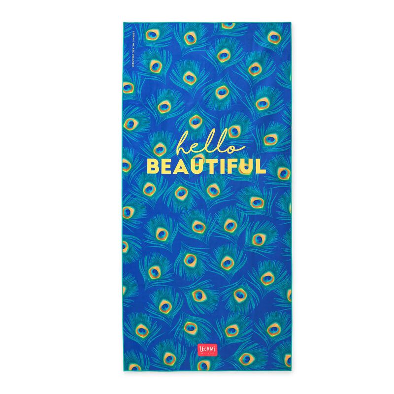 Claim your space on the beach in style with the Legami Beach Towel - Peacock. As practical as it is stylish, the towel is lightweight, compact and double-sided, so it won't be too much to carry. Quick-drying and ultra-absorbent, you'll be able to sunbathe, get lost in your summer read, and soak up the good vibes. Features a fun print on one side, and a block colour on the other.