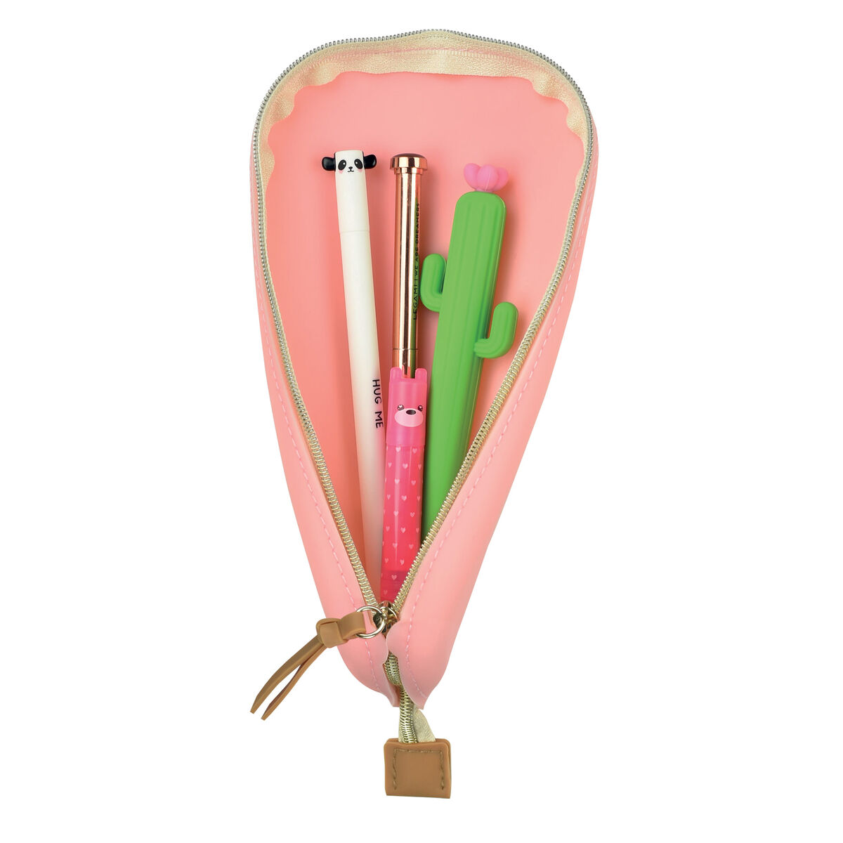 The Legami Cute! Soft Silicone Pencil Case Pink is a wonderfully tactile and versatile case for storing and carrying about 10 pens or pencils. The dual zip design lets you open the case partially or completely, thanks to the silicone zip stopper flaps.