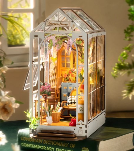 Experience the assembly of our Garden House DIY book nook kit, where French elegance meets rustic charm, featuring vibrant stained glass, a curved staircase, side-opening windows, touch-sensitive night lights, and beautiful wisteria vines. Pieces: 176 Assembly Time: 5H