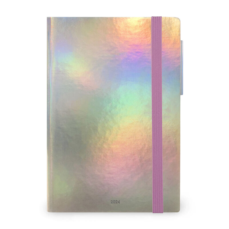 As comfortable on your desk as in your bag, the Legami Medium 12-Month Weekly Diary 2024 - Holo Fairy is a colourful planner that lets you organise your time week by week. Each week is split across two pages, so you can keep track of what's important and see what's coming up. Featuring a double-page planner for every month including January 2025, the attention to detail is evident on the outside, too. Featuring a colourful soft PU cover, elastic closure and ribbon bookmark.