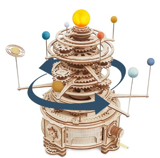 This Robotime-ROKR Mechanical Orrery ST001 is a 3D wooden puzzle showing the orbits of the 8 planets in the solar system. This is an entertaining & educational puzzle toy which cultivate curiosity and creativity as well as gain knowledge. Have fun self-assembling!