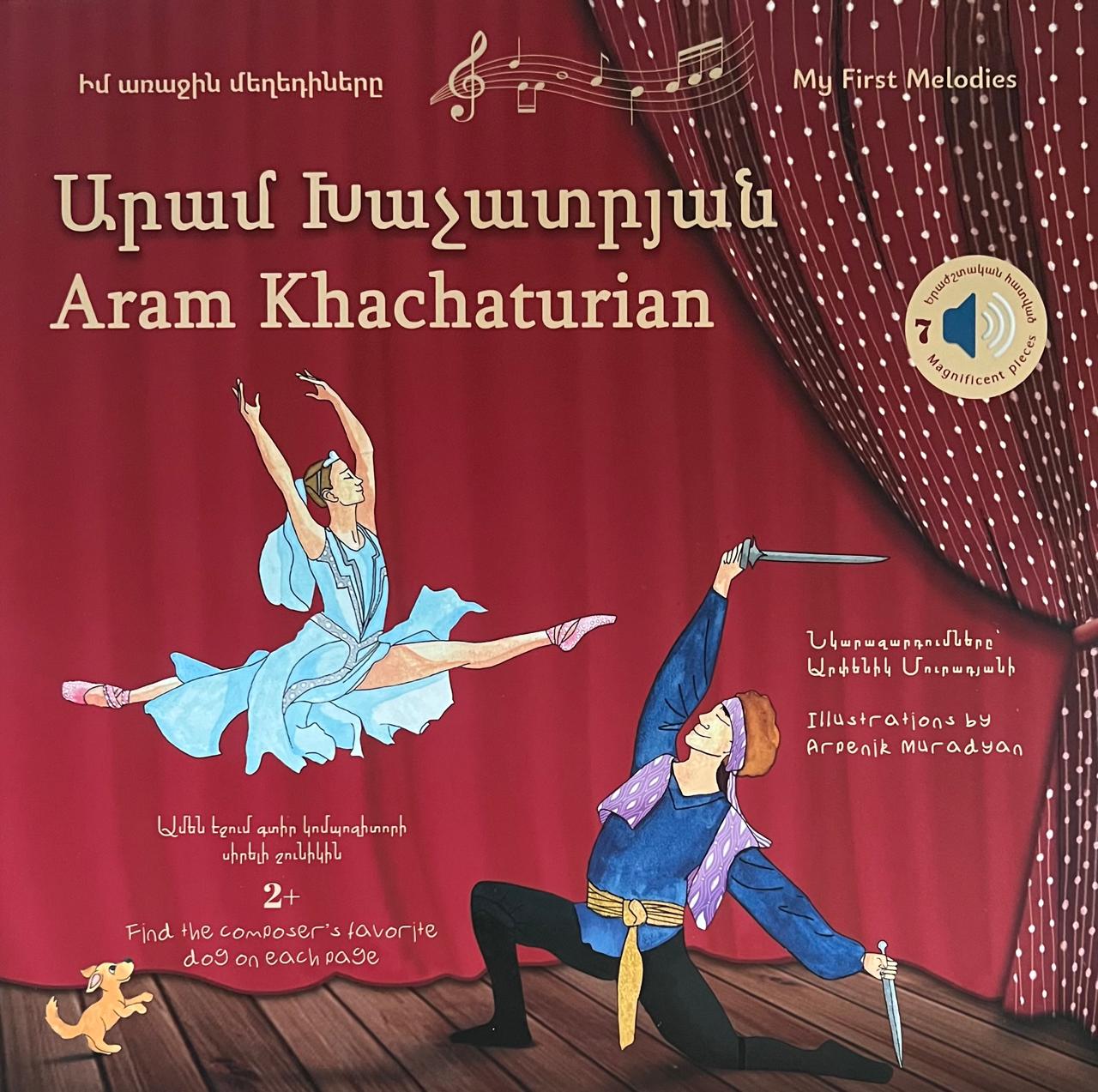 Վերջապես հայկական առաջին ձայնային-երաժշտական գրքերը՝ ստեղծված հայ հեղինակների, հայ նկարազարդողի ու հայ հրատարակչի կողմից: Հայ մեծանուն կոմպոզիտոր Արամ Խաչատրյանի այս գունագեղ նկարազարդ ձայնային գրքում երեխաները կլսեն նրա հանրահայտ մեղեդիներից հատվածներ՝ ընդամենը կոճակի մեկ հպումով: Գիրքը երկլեզու է՝ հայերեն ու անգլերեն և պատմում է կոմպոզիտորի կյանքի ու ստեղծագործություննների մասին: Էջերին թաքցրել ենք Կոմիտասի սիրելի սողսողիկին, որին ձեր բալիկը պետք է փնտրի ու գտնի՝ մարզելով ուշադրությունը Ձեռք բերեք «Իմ առաջին մեղեդիները» շարքի այս հիասքանչ գիրքն ու թող մեր բալիկները մանկուց լսեն դասական երաժշտություն ու ճանաչեն հայ մեծերին: