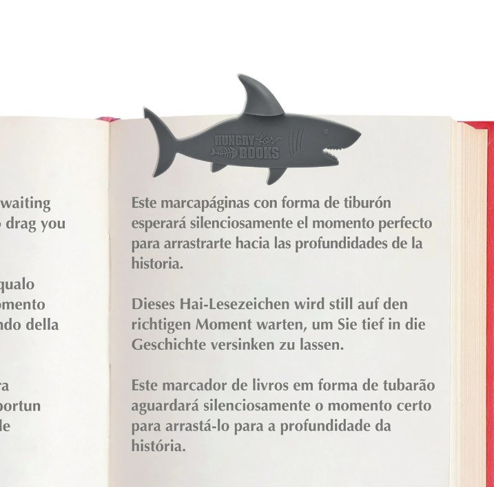 There's a shark in your book: the Hungry for Books Bookmark will silently wait for the right moment to drag you into the depths of your story, its fin sticking out from between your pages ready for you to dive back in.