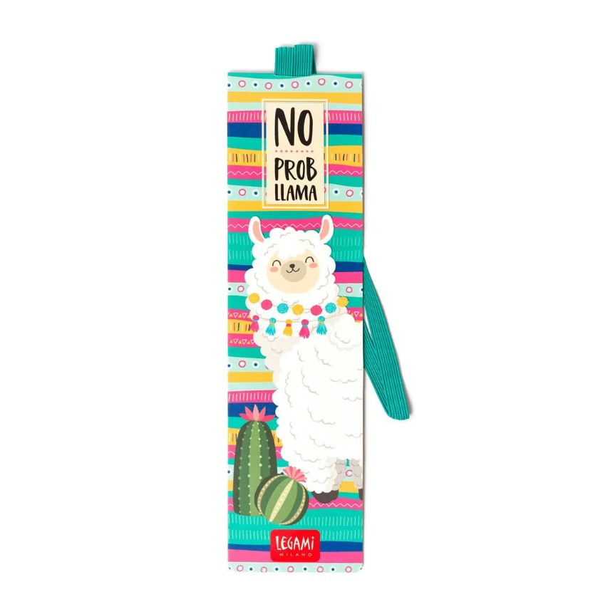 Relax with a good book and the fun and friendly Legami 'No Probllama' bookmark. The elastic page marker can be hooked over the cover to keep your book