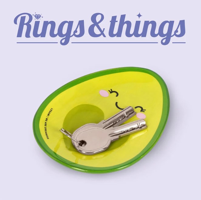 If the first thing you do when you get home is remove your jewellery and empty coins from your pockets, it’s good to know they’ll still be there in the morning. The Avocado themed Rings & Things Ceramic Plate by Legami is the most original and unique pocket emptier on the web. Its hand-finished details will add a touch of class to your hall, bathroom or bedroom. Material: ceramic