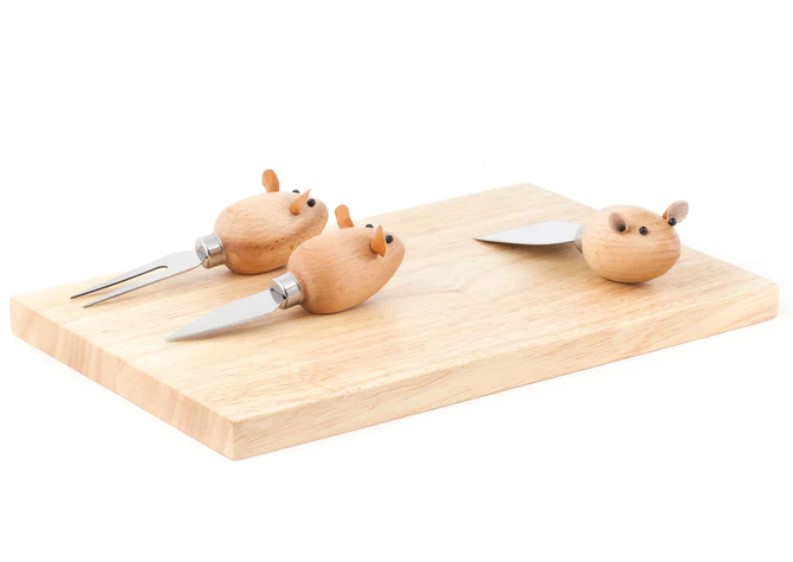 Cheese lovers unite with mouse cheese board . Comes with 3 cute mouse cheese knives.