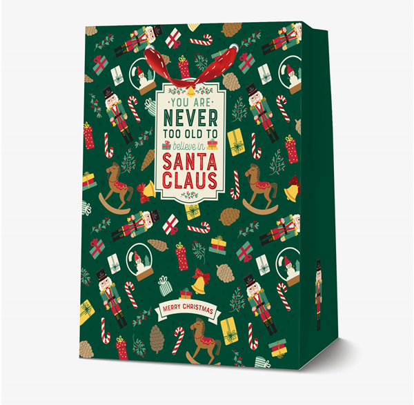 GIFT BAG LARGE L 26.5 cm x H 32.5 cm x W 11.5 cm - Matte laminated paper, spot UV or coloured foil, ribbon handles - FSC certified paper (FSC-C154586)