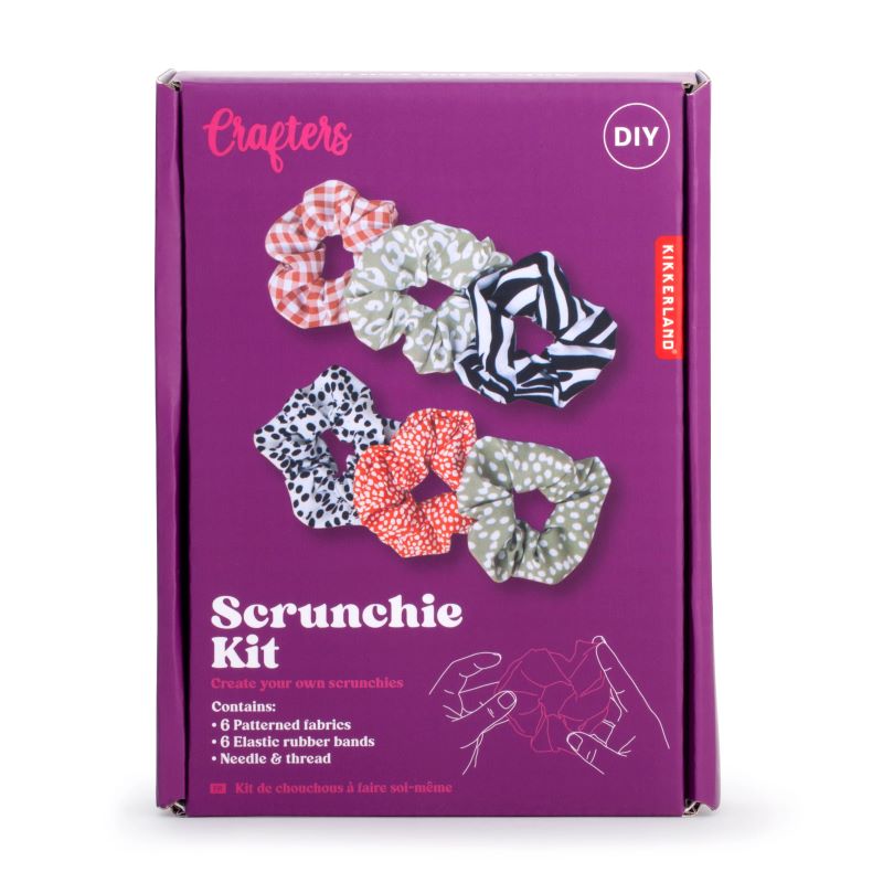 Everything you need to create your own scrunchies! This kit contains: 6 patterned fabrics, elastic rubber bands, needle and thread. Design: Hector Serrano Materials: polyester, rubber, stainless steel Packaging: kraft box with sleeve Dimensions: 45,7 x 10,2 cm