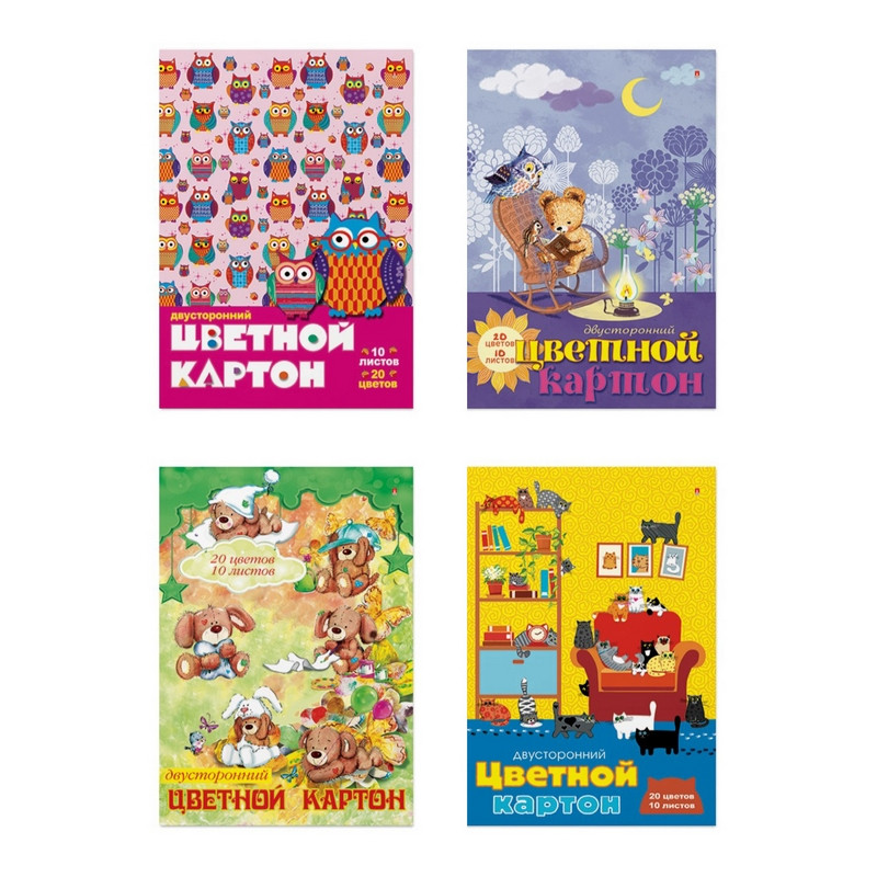 Երկկողմանի գունավոր ստվարաթուղթ А4, 10 հատ, 20 գույն "Мультики"