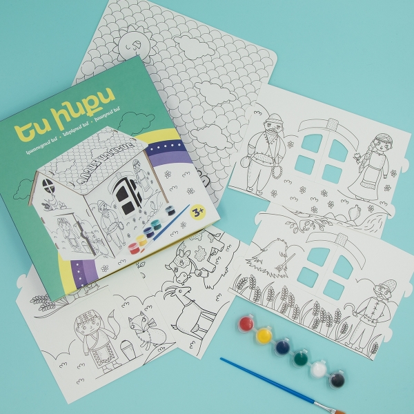 Ներառում է. 1 ստվարաթղթե եռաչափ տնակ`《Պոչատ աղվեսը》 հեքիաթի հերոսներով Ակրիլային անվտանգ ներկերի հավաքածու` 6 տարբեր գույներով 1 վրձին Եռաչափ տնակը հավաքելու համար պարզապես իրար միացրեք 5 կտորները։ Ակրիլային ներկերն oգտագործելուց հետո ամուր փակեք, որպեսզի չչորանան։ Հեշտությամբ մաքրվում են վրձնից, ձեռքերից ու հագուստից։ Հավաքված տնակի չափսը՝ 15սմ x 21սմ x 20սմ