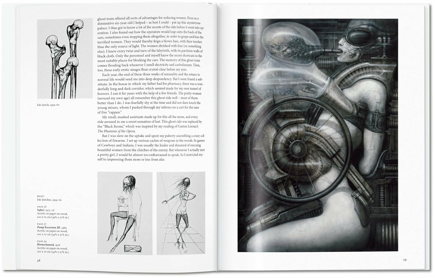 From surrealist dream landscapes created with a spray gun and stencils to album cover designs, from guillotine-like sculptures to self-designed bars, Giger personally guides us through his multi-faceted universe in this definitive introduction to a master of horror. Detailed reproductions and designs and a foreword by Timothy Leary complement Giger’s intimate autobiographical texts.