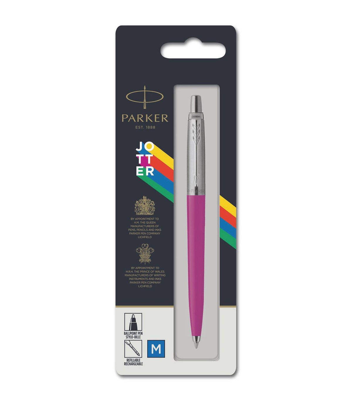 A vibrant icon has been relaunched and redefined to enable the next generation to capture thoughts and reimagine the future. Combining Jotter's distinctive silhouette, its signature click and the arrow clip with a bold colour palette, Jotter Originals is true to its origins. With a stainless steel cap that is complimented by a glossy and colourful barrel, it brings a retro touch to your everyday writing moments.