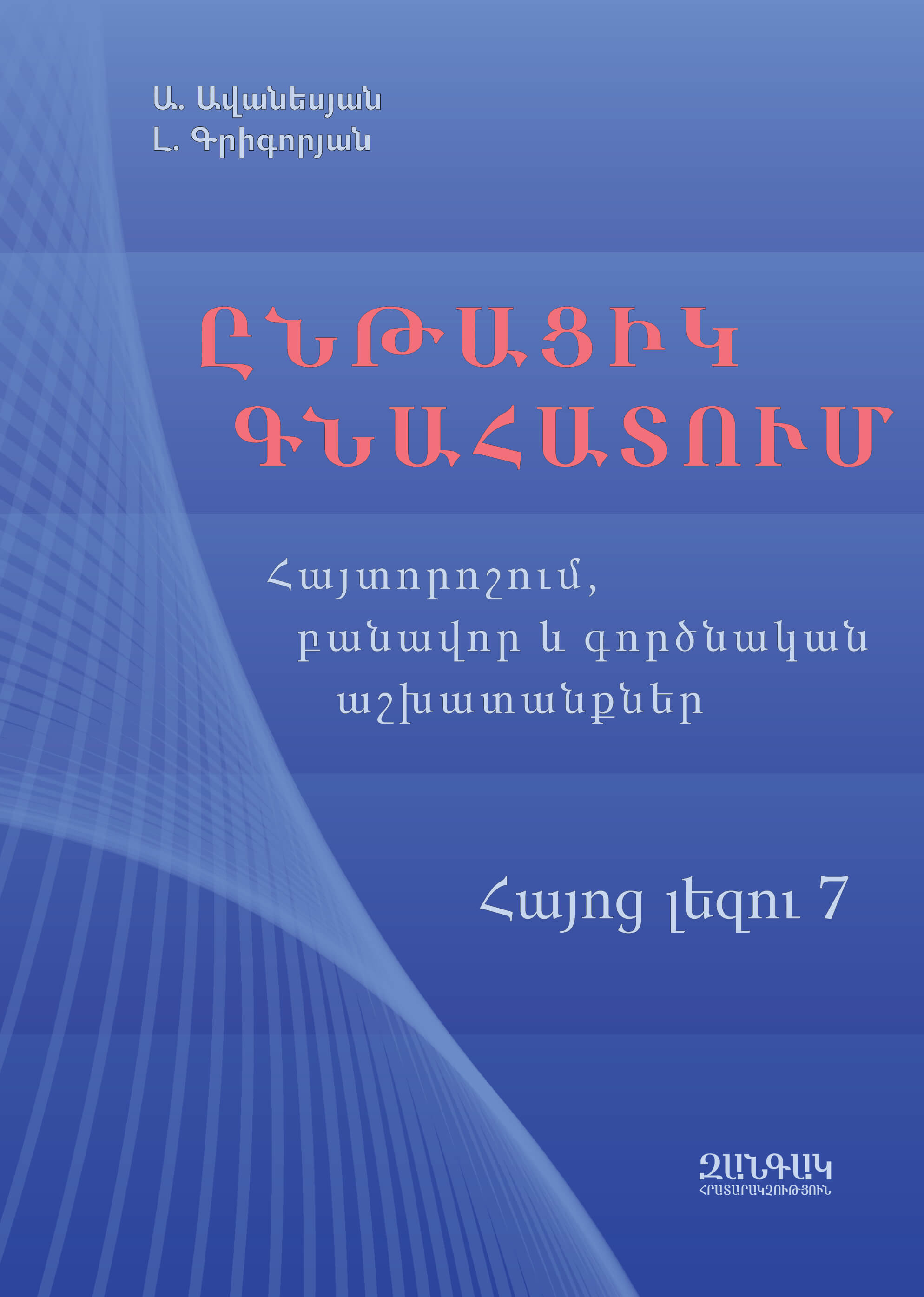 Ձեռնարկը հասցեագրված է հանրակրթական դպրոցի 7-րդ դասարանի աշակերտներին և «Հայոց լեզու» առարկան դասավանդող ուսուցիչներին: Ձեռնարկը բաղկացած է երեք բաժնից՝ հայտորոշիչ թեստեր, բանավոր հարցման հարցաշարեր, գործնական աշխատանքների առաջադրանքներ և նմուշօրինակներ: Ձեռնարկի վերջում մանրամասն տրված են ուսուցանող գնահատման ձևերն ու տեսակները: Հայտորոշիչ թեստերն ընդգրկում են առարկայական ծրագրի բոլոր թեմաները և կազմված են 4-ական տարբերակից: Թեստերի անցկացման ժամանակ դրանք պետք է պոկվեն գրքից և բաժանվեն աշակերտներին: