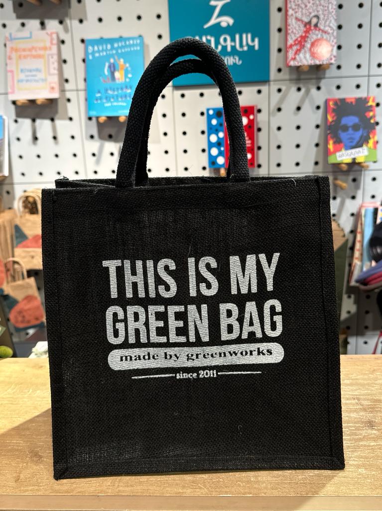 Ջուտե պայուսակ "This is my green bag" սև