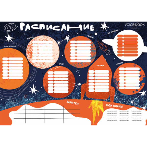 Расписание станет отличным подарком к началу учебного года: в нем удобно отмечать уроки, графики звонков и списки дел на день. А «Заметки» и «Мои планы» можно использовать для того, чтобы записать важную информацию (например, дни рождения родственников) или планы на каникулы!