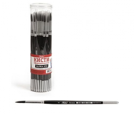 Кисть предназначена для оформительских работ и изобразительного искусства. Кисть с ворсом из волоса белки, размером № 4, круглой формы. Имеет защитный пластиковый колпачок и гуммированный волосяной пучок, способный удерживать краску и сохранять кончик заостренным, что облегчает процесс прорисовки и раскрашивания мелких деталей. На ручку нанесен логотип, номер и название кисти, а также штрих-код, считываемый всеми моделями современных сканеров.