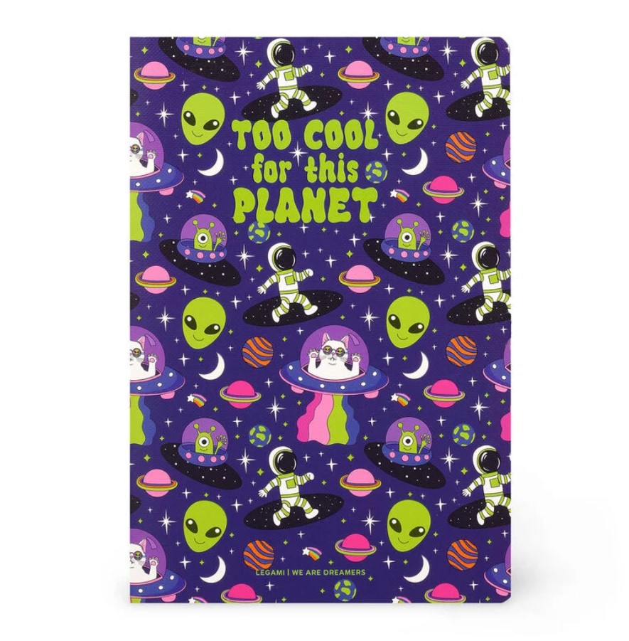 Feel happy with the Legami Space Notebook with lined pages - Medium. The A5 format makes this the ideal companion for home, school or the office.