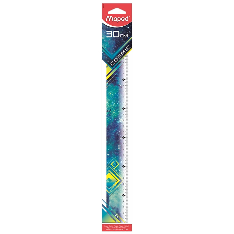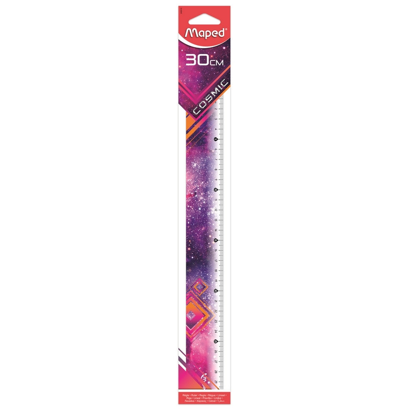 Линейка Cosmic Teens, пластиковая, 30 см. Для измерения и черчения. Каждые 5 см выделены для удобства. Дизайнерская серия Cosmic, стойкий рисунок, перманентная градуировка.