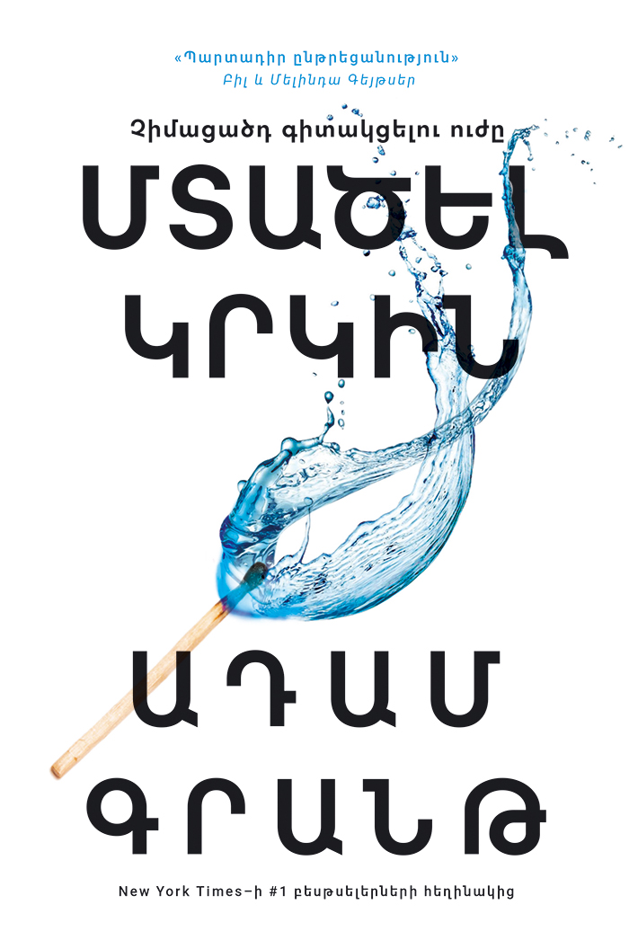 Սա մի պատում է, որն անկասկած ստիպելու է Ձեզ մտածել և նոր հայացք գցել Ձեր համոզմունքներին, աշխարհայացքին և մտածողությանը։ Մեծ հնչեղություն ձեռք բերած «Մտածել կրկին» գրքի հեղինակ Ադամ Գրանթը վերանայումը համարում է հմտությունների համակարգ, ինչպես նաև մտածողություն։ Այս գրքում հեղինակը ընթերցողին ուղղորդում է դեպի վերաիմաստավորման ճանապարհ, տարբեր իրավիճակների ու հետազոտությունների վերլուծություններ ներկայացնելով՝ բացահայտում է այն պարզ ճշմարտությունը, որ կայծակնային արագությամբ փոփոխվող աշխարհում անհատը պետք է կարողանա ինքն իրեն հարց տալ, թե որքանով են իր նախկին պատկերացումներն ու հայացքները ճշմարիտ այսօր։