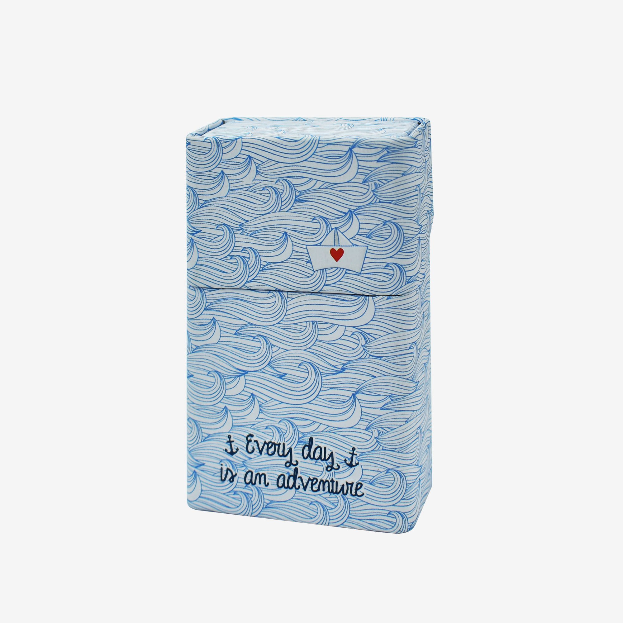 The cigarette packet cover Every Day Is An Adventure From The First Step is perfect for carrying around your cigarettes in style, whether on the go, during your free time, or at work. Made of tin with rubber lining, it is an original gift idea