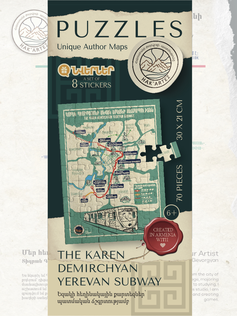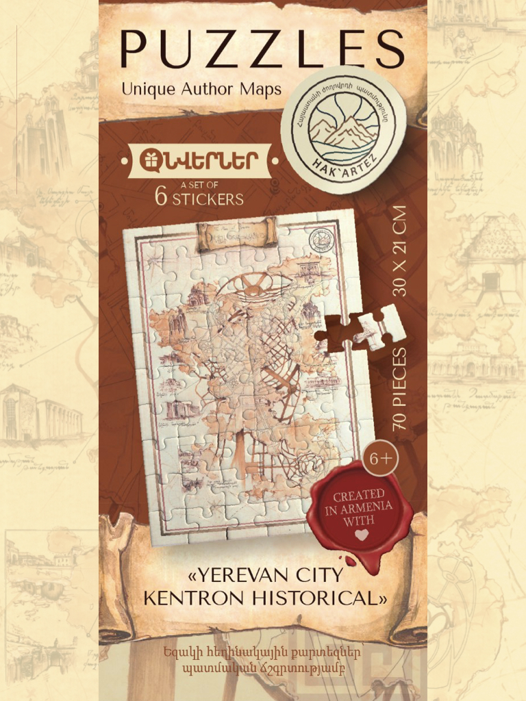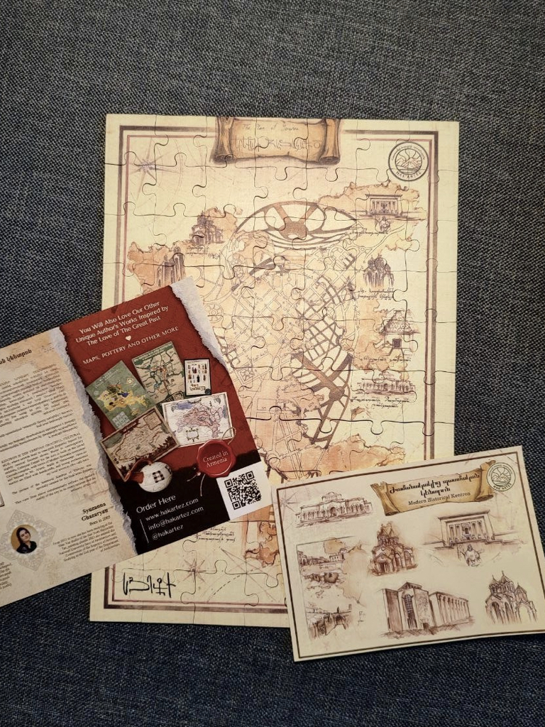 Փայտե փազլներ երեխաների և մեծահասակների համար. Ձեռագործ, լազերային կտրված դեկորատիվ նրբատախտակից։ Ամբողջությամբ արտադրված է Հայաստանում։ Ուրարտուի Հին թագավորության և Մեծ Հայքի թագավորության հեղինակային քարտեզների գունավոր տպագրություն. Գերազանց ուսումնական նվեր երեխաների համար։ Հավաքվելուց հետո այն կարող է դառնալ ներքին հարդարանքի լիարժեք։