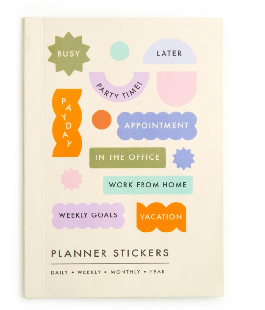 Planner enthusiasts rejoice! 800+ calendar stickers in a variety of shapes, sizes, and call-outs to use on planners, wall calendars, and journals. Fun and creative way to stay organized and motivated. Design: Goodlines Materials: FSC paper Packaging: FSC bellyband Dimensions: 14,5 x 10,2 x ,4 cm