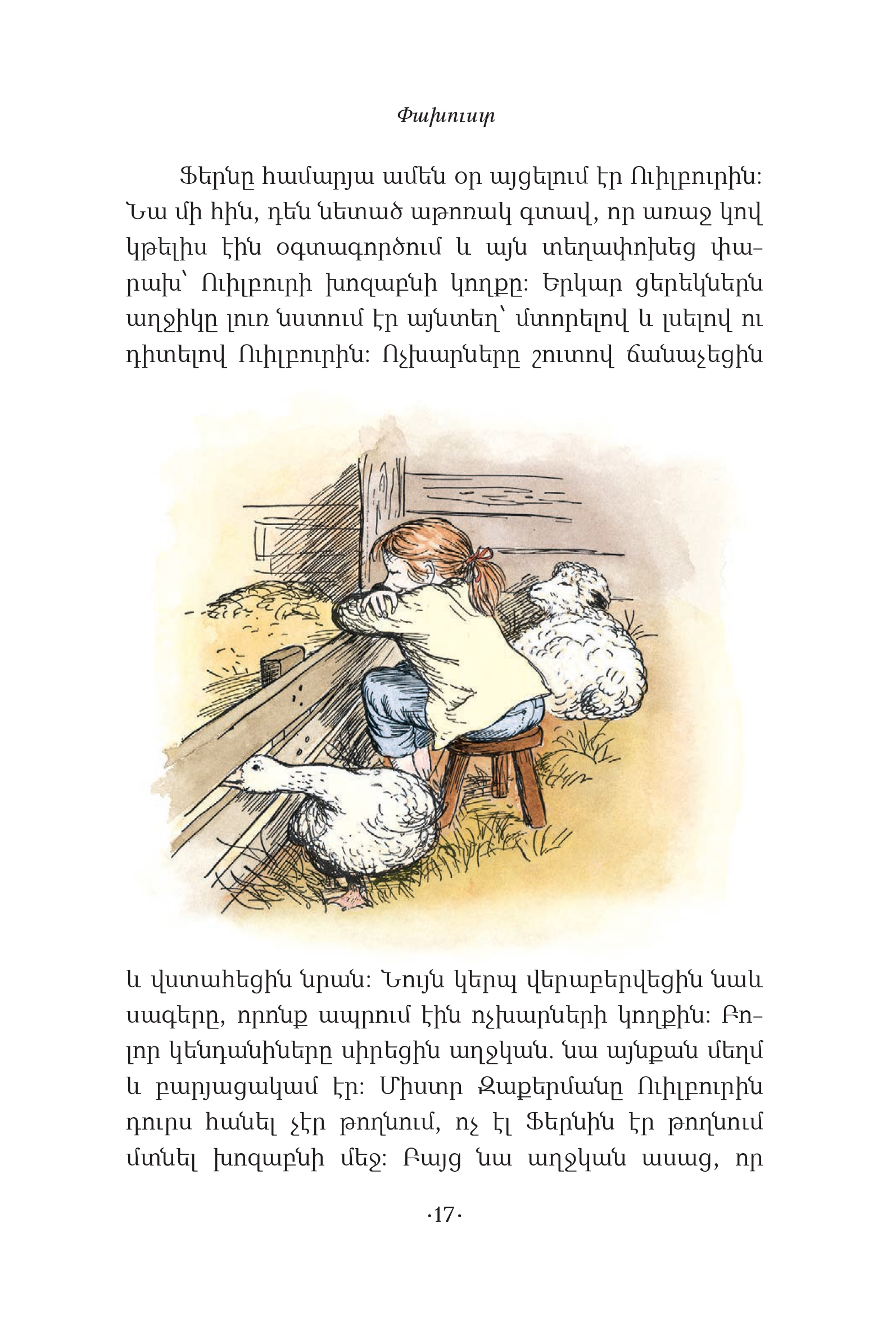 Ամերիկացի ճանաչված գրող Էլվին Բրուքս Ուայթի «Շարլոթի սարդոստայնը» վիպակը ամերիկյան մանկական գրականության ամենասիրված ու հանրաճանաչ ստեղծագործություններից է։ Այն առաջին անգամ հրատարակվել է 1952 թվականին։ Գիրքը պատմում է Զաքերմանների ընտանիքին պատկանող անասնագոմում կողք կողքի ապրող կենդանիների մասին։ Գրքի հասցեատերը և՛ մանուկներն են, և՛ ավագ ընթերցողները։