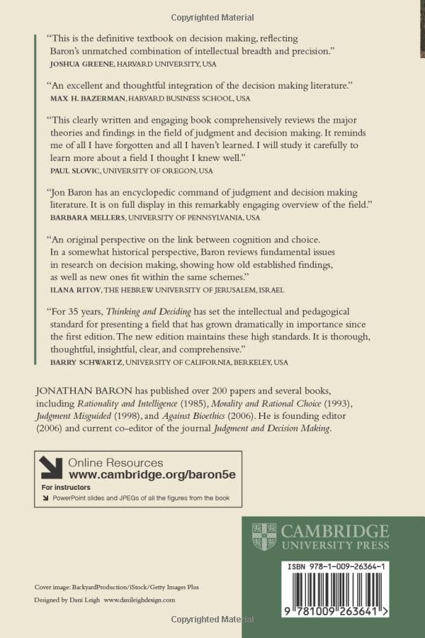 The fifth edition of the classic text Thinking and Deciding updates the broad overview of the field of judgments and decisions offered in previous edi