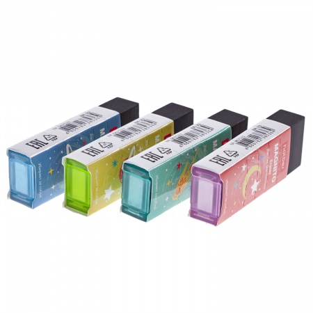 Ластики Magnito отлично справляются с удалением рисунков и надписей, сделанных чернографитными карандашами. Их уникальные свойства сохраняют поверность бумаги чистой после использования. Достаточно провести обратной стороной ластика над катышками, оставленными после стирания, и они все соберутся встроенным магнитом. Отрывная перфорация на чехле позволяет регулировать его размер под ластик, по мере стирания. 4 уникальных дизайна чехла в 4-х цветовых решениях. Каждый ластик имеет штрихкод. Упаковка - индивидуальная, 32 шт. в картонной дисплей-витрине