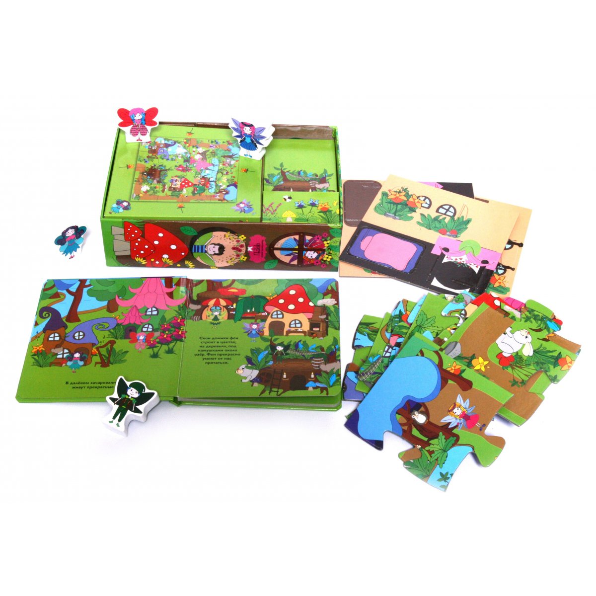Прекрасно проиллюстрированная книжка Четыре деревянные фигурки фей Картонный домик и кроватка для сборки