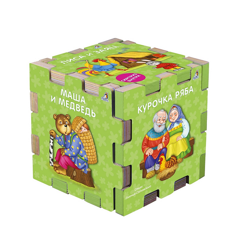 Это уникальная разработка, которая позволит вашему ребёнку одновременно развиваться и играть. 6 книжек-пазлов собираются в один большой кубик или в одну большую картинку-пазл. Читайте сказки, рассматривайте картинки и знакомьтесь