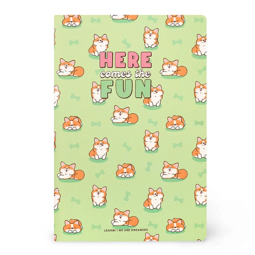 Feel happy with the Legami Green Corgi Notebook with lined pages - Medium. The A5 format makes this the ideal companion for home, school or the office