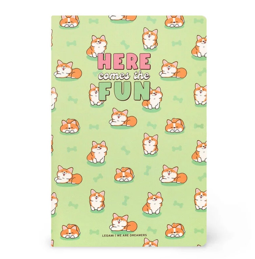 Take note, whatever the weather with the Legami Green Corgi Notebook with lined pages - Small. At A6, it's the perfect size to throw into your bag and