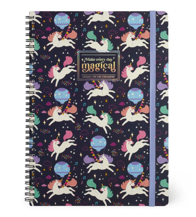 As the famous song goes: "if you like it, then you should've put a ring on it" And we like the Unicorn-themed Spiral-bound Maxi-Lined Notebook from Legami so much that we’ve put rings on it all the way down the spine! Bring your thoughts, ideas, notes and stickers together and get ready to turn the page to start a new chapter!