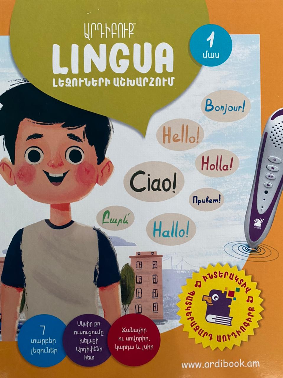 Արդիբուք «LINGUA-լեզուների աշխարհում» (Մաս 1) պատկերազարդ աուդիոգիրքը Արդիբուքի և A&WW վիրտուալ դպրոցի համատեղ պրոդուկտ է, որն հնարավորություն է տալիս սովորել 7 լեզու` Հայերեն, Անգլերեն, Իտալերեն, Իսպաներեն, Ֆրանսերեն, Գերմաներեն, Ռուսերեն: Մոտեցնելով աուդիոգրիչ Արդիփենը քո իսկ նախընտրած լեզվի դրոշին` այս շարքի հերոս Արամիկն այդ լեզվով կծանոթացնի քեզ իր առօրյային, սիրելի զբաղմունքներին, դու կսովորես տարբեր լեզուներով անվանել հույզերը և զգացմունքները, բնավորության գծերը, արտաքին տեսքն ու մարմնի մասերը: