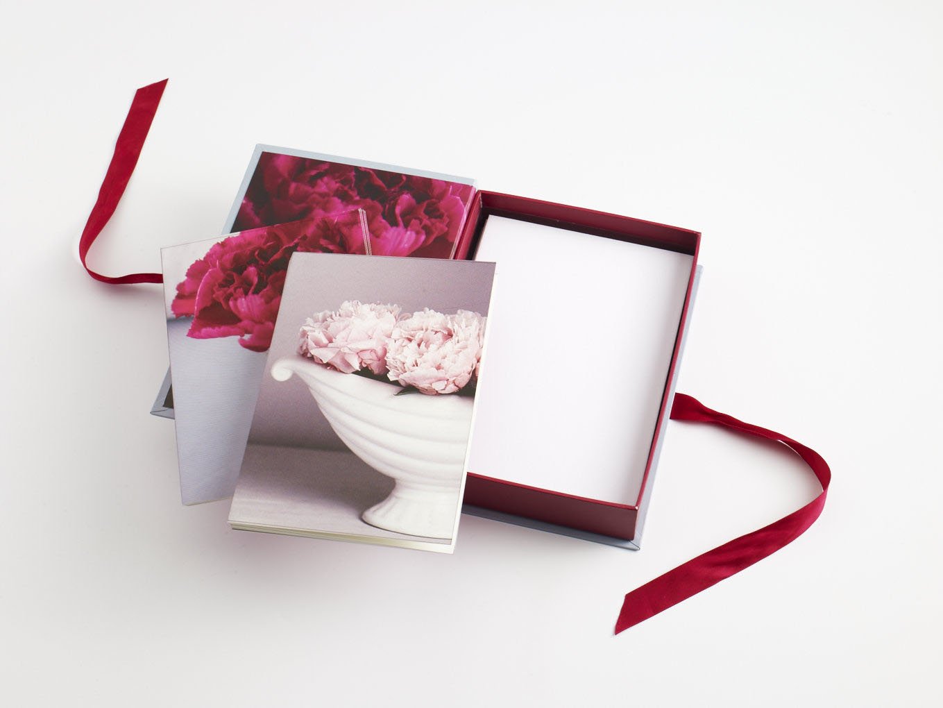 These beautiful cards are the perfect thing to have at hand when you need to dash off a quick thank you note or birthday greeting. There are 16 cards in a box in 2 designs along with 16 envelopes. The ribbon closure gives a luxurious feel as you open the box, making writing a simple card or letter a lovely experience. And once all the cards have been sent, you can use the box with ribbon closure to store all your secrets and treasures.