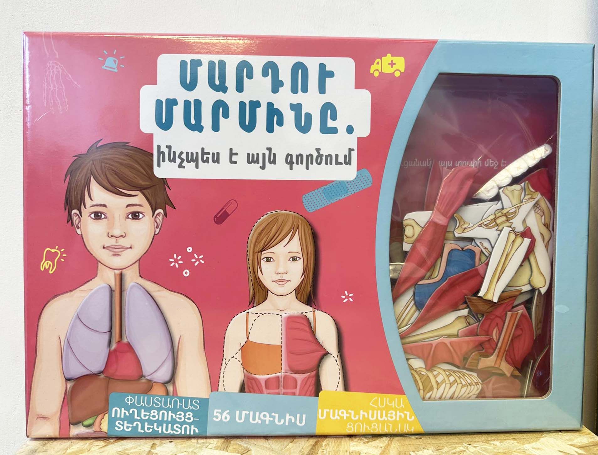Փաստառատ ուղեցույց մարդու մարմնի մասին:Մարդու մարմնի տարբեր օրգաններ ներկայացնող 56 մագնիսը դիր ճիշտ տեղերում՝ մագնիսային ցուցանակի վրա:Մարդու անատոմիան այլևս չունի ոչ մի գաղտնիք քեզ նման հմուտ բժշկից:Փաթեթը ներառում է՝ հսկա մագնիսային ցուցանակ, 56 մագնիս՝ 19 մագնիս կմախքի համար, 6 մագնիս օրգանների համար, 19 մագնիս մկանների համար, որոնք պետք է ճիշտ տեղադրել, 96 էջանոց ուղեցույց մարդու մարմնի և դրա գործառույթների համար: