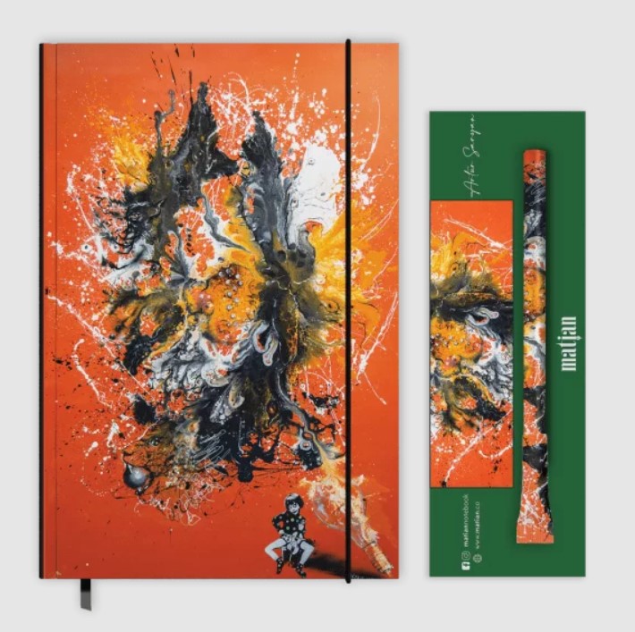 ART Նոթատետրի չափսը 14.8×21սմ է (A5): Կազմը կոշտ և թավշյա լամինացված է։ Պարունակում է 100 դատարկ թերթ, գրպանիկ և էջանիշ։
