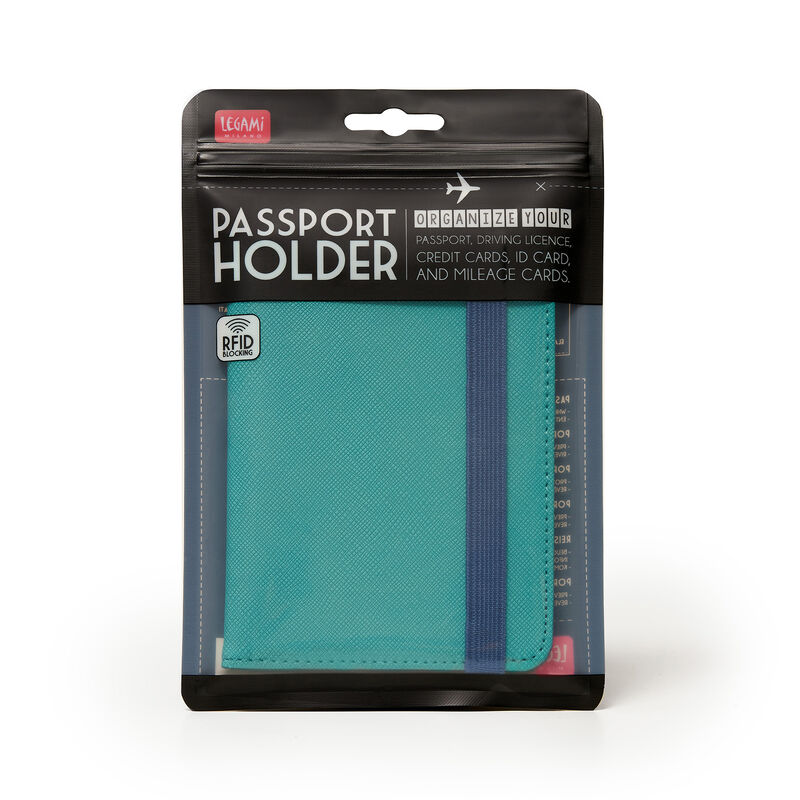 Travel the world with the Legami Passport Holder - Turquoise. This trusty travel companion contains a passport pocket, 4 pockets for credit cards and tickets and RFID blocking, all sealed with an elastic closure, so you can relax before boarding. RFID protection: protects against data theft. When closed it prevents unauthorised access to personal information