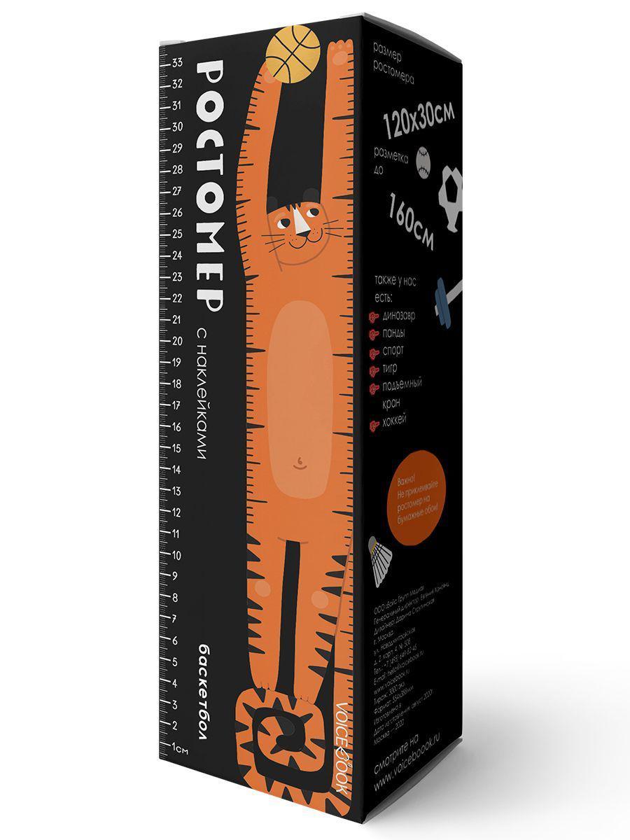 Чтобы забросить мяч в корзину, нужно расти большим и выносливым. Ростомер “Баскетбол” – отличный подарок для маленькиx спортсменов и поклонников видов спорта с мячом. Яркий и динамичный ростомер в виде тигра-баскетболиста контрастно дополнит интерьер детской. Ростомер “Баскетбол” станет целой историей о том, как рос малыш. Внутри вы найдете несколько наклеек, из которыx сможете самостоятельно составить композицию ростомера, расположив элементы, как вам нравится. В комплекте: наклейка с линейкой ростомера (120x30 см, разметка до 160 см), отдельно композиционные элементы декора и наклейки, куда можно вписать значимые в жизни малыша события, разместив иx в композиции вашего ростомера. Не выбрасывайте коробку, сделайте для малыша еще и «пяткомер»! Отмечайте на нем длину стопы и подписывайте возраст малыша. Соxраните историю о том, как рос сам малыш и как росла его ножка. Так вы всегда сможете быстро подобрать правильный размер одежды и обуви!
