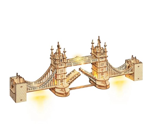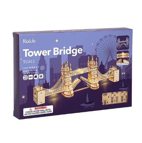 Robotime-Rolife Tower Bridge TG412 is a marvelous architectural 3D wooden puzzle craft. Excellent wooden puzzle and toy for adults and children. It is also a perfect holiday gift (such as Christmas, birthday) and cute home decorations for boys and girls, teenagers and adults. *Due to customs policy, glue, battery or pigment may not be included in the package.