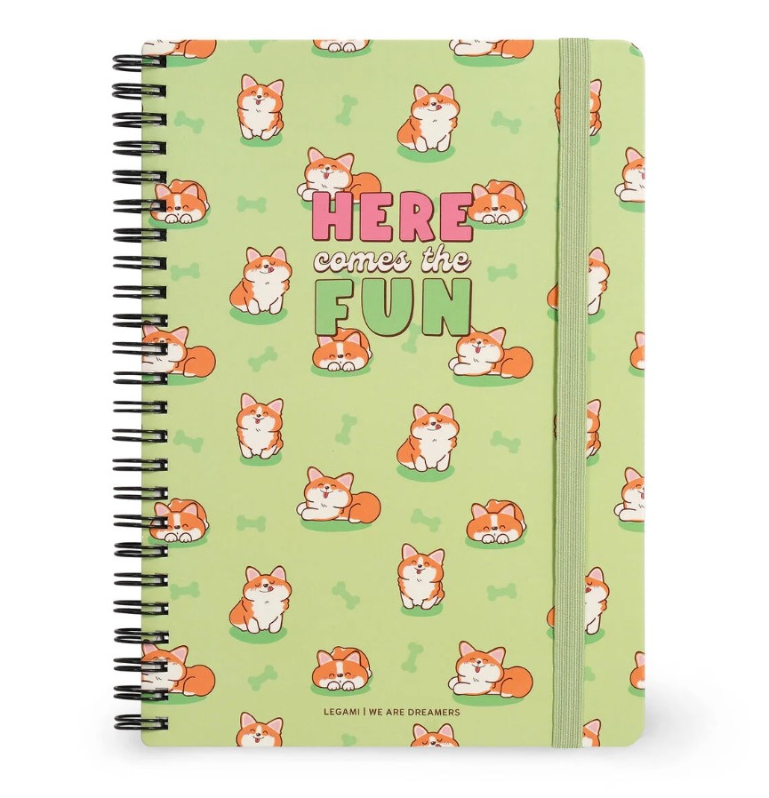 As the famous song goes: "if you like it, then you should've put a ring on it" And we like the Green Corgi-themed Spiral-bound Large-Lined Notebook from Legami so much that we’ve put rings on it all the way down the spine! Bring your thoughts, ideas, notes and stickers together and get ready to turn the page to start a new chapter!
