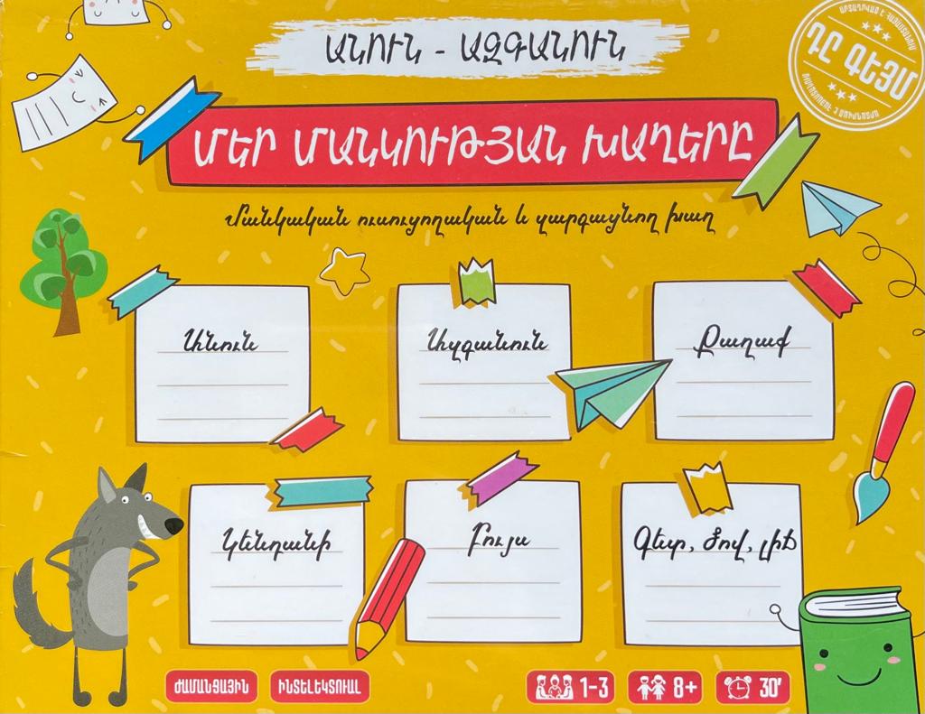 Տուփում կգտնեք բազմակի օգտագործման համար նախատեսված թղթյա խաղատախտակներ, ջնջվող մարկերներ, տառեր և ինֆորմացիոն քարտեր՝ ամենահայկական տեղեկատվությամբ Խաղը հնարավոր է խաղալ՝ 1. մենակ (ինքնակրթվելու և սեփական գիտելիքները ստուգելու համար) 2. երկու կամ երեք հոգով (մրցելու նպատակով) 3․ թիմերով