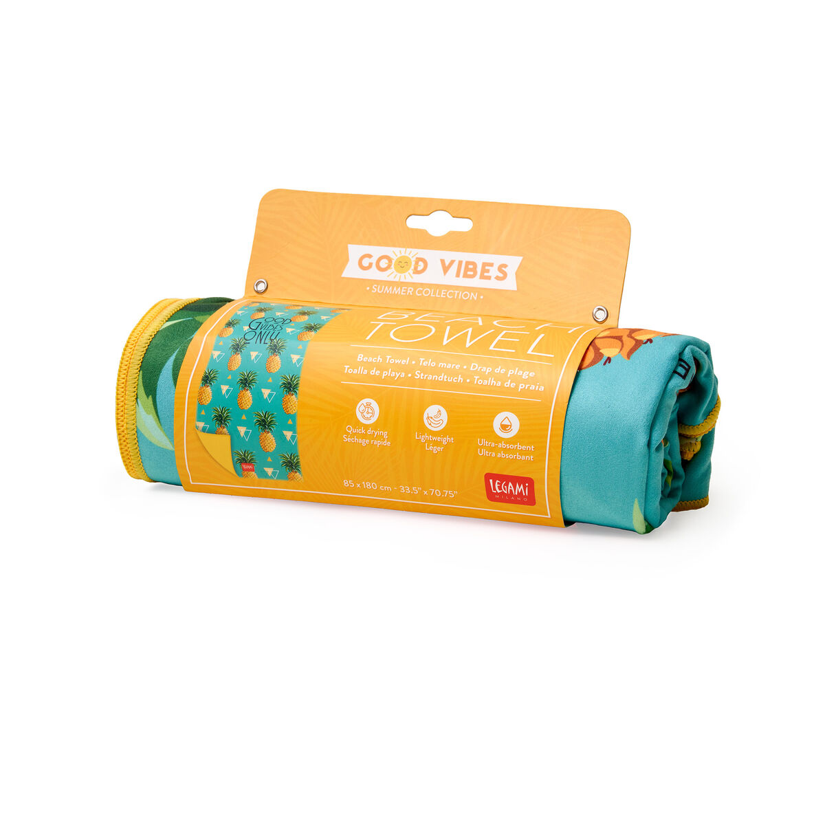 Claim your space on the beach in style with the Legami Beach Towel - Pineapple. As practical as it is stylish, the towel is compact, lightweight and double-sided, so it won't be too much to carry. Quick-drying and ultra-absorbent, you'll be able to sunbathe, get lost in your summer read, and soak up the good vibes. Features a fun print on one side, and colour block on the other.
