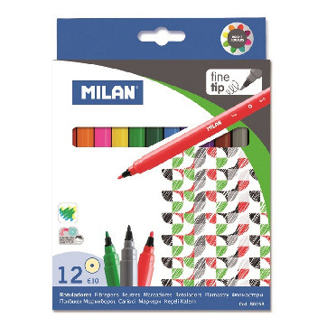 Цветные фломастеры 12 цветов - Milan Fibre Pens