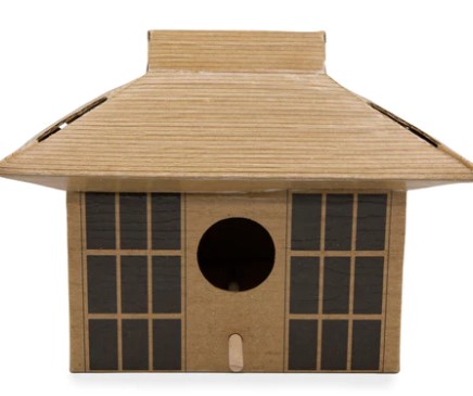 Perfect for bird lovers! Easy to put together. No tools necessary, other than your hands! Water-resistant house with a dowel for the front perch Designer: KDT Product Measurement: (Assembled) 20 x 16,4 x 15,2 cm Material: wax coated cardboard, wood dowel
