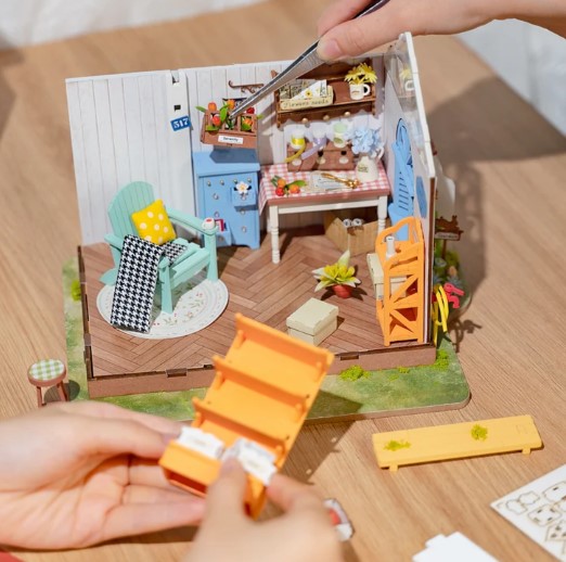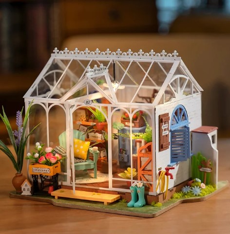 Check our top-tier European-inspired miniature of a garden house, which includes intricate details of gardening, structure, and objects, showered with charm and greenery, giving a realistic experience in home gardening. Age:14+ Material:Plywood, Paper, Plastic Assembly Time: 6h Assembled Size: 245*190*190mm Pieces: 240
